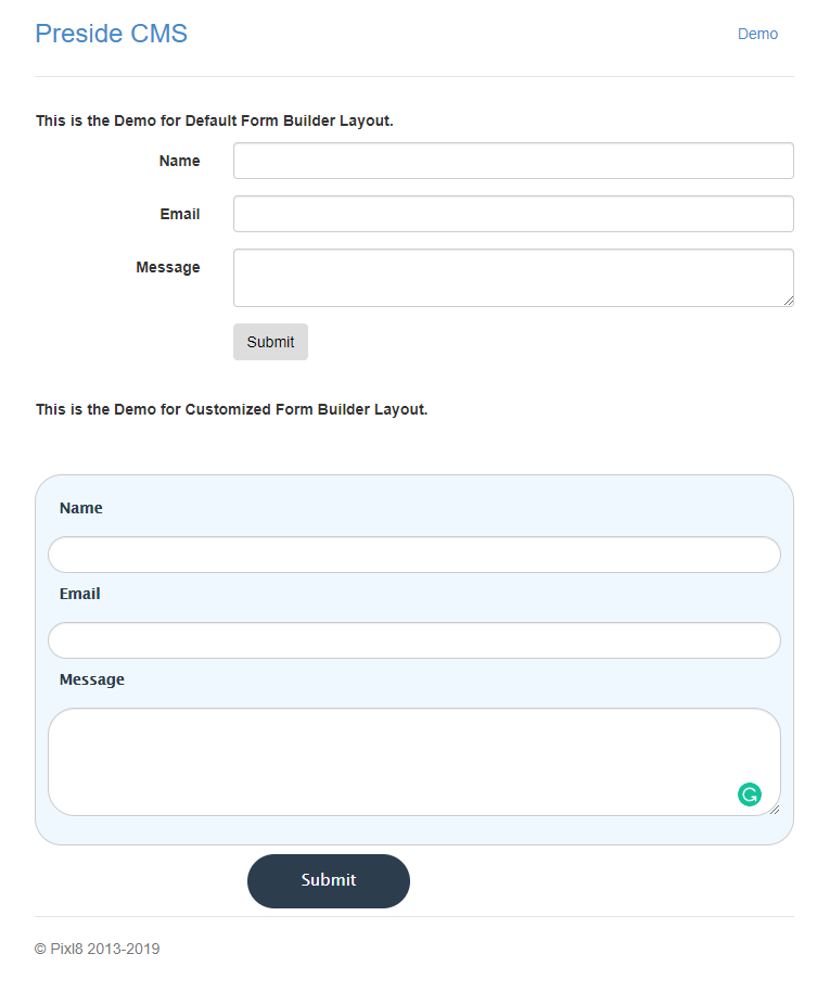 Below is the sample view of PresideCMS default form layout.