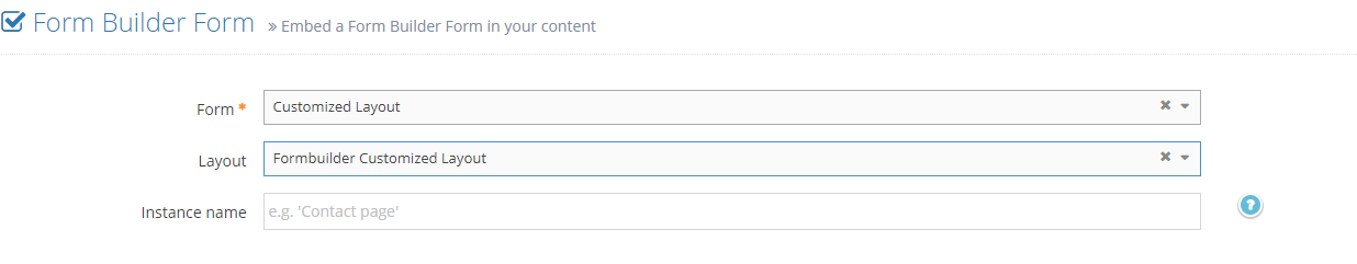 Also we need to create the views in designated path mentioned on the customized handler(s) above under <Application_Root>/application/views/formbuilder/custom_layout1 Enter below code with your CSS class.